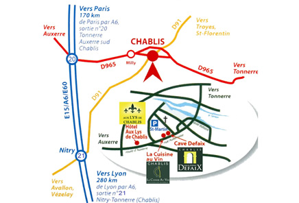 Hôtel*** - Restaurant Aux Lys de Chablis 38, route d'Auxerre 89800 CHABLIS FRANCE Tél : 03 86 42 49 20 - Fax : 03 86 42 80 04 Email : contact@hotel-lys-chablis.com